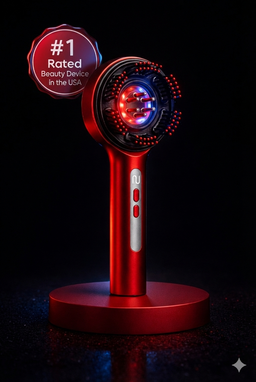 Cepillo capilar combina masaje relajante y tecnología de luz LED para estimular la circulación del cuero cabelludo, favorecer la absorción de tratamientos y mejorar la salud del cabello desde la raíz